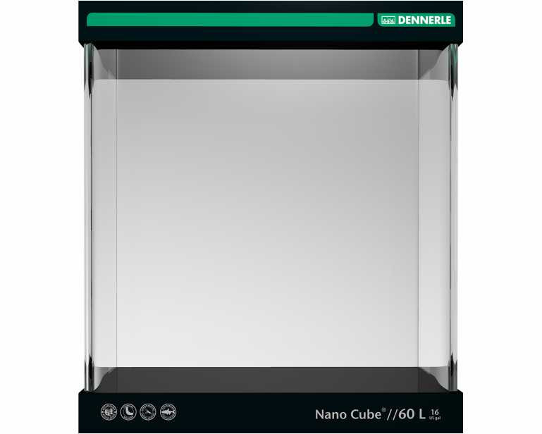 De Dennerle NanoCube is een miniaquarium met een panoramaruit, geschikt voor zoet- en zeewater.De set bevat een afdekplaat, Scaper's Back zwarte achterwandfolie en een onderlegger van schuimplastic.
