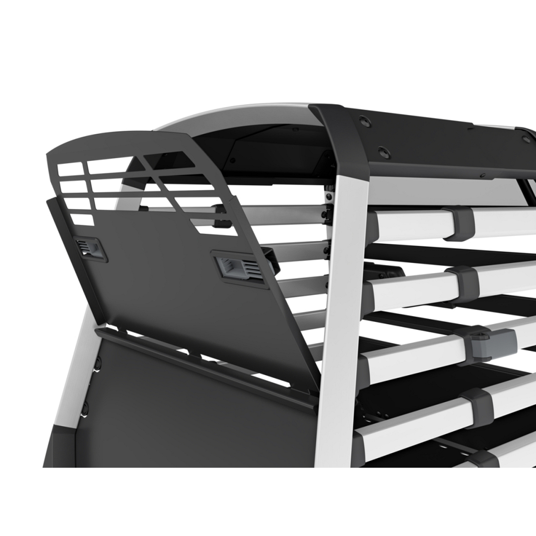 Thule Allax Treshold transportbench, de veilige, betrouwbare en gebruiksvriendelijke hondenbench voor in de auto. Voorzien van een geavanceerde bescherming door middel van een kreukelzone en een ontsnappingsluik; comfort voor jezelf door de gasgedempte deur met prettig deurklink en voorzien van een slot. Eenvoudig in lengte aan te passen voor de optimale passing in de auto. Voldoet aan de Crash testen, is voorzien van een doorkijk zodat je de hond in de gaten kunt houden.