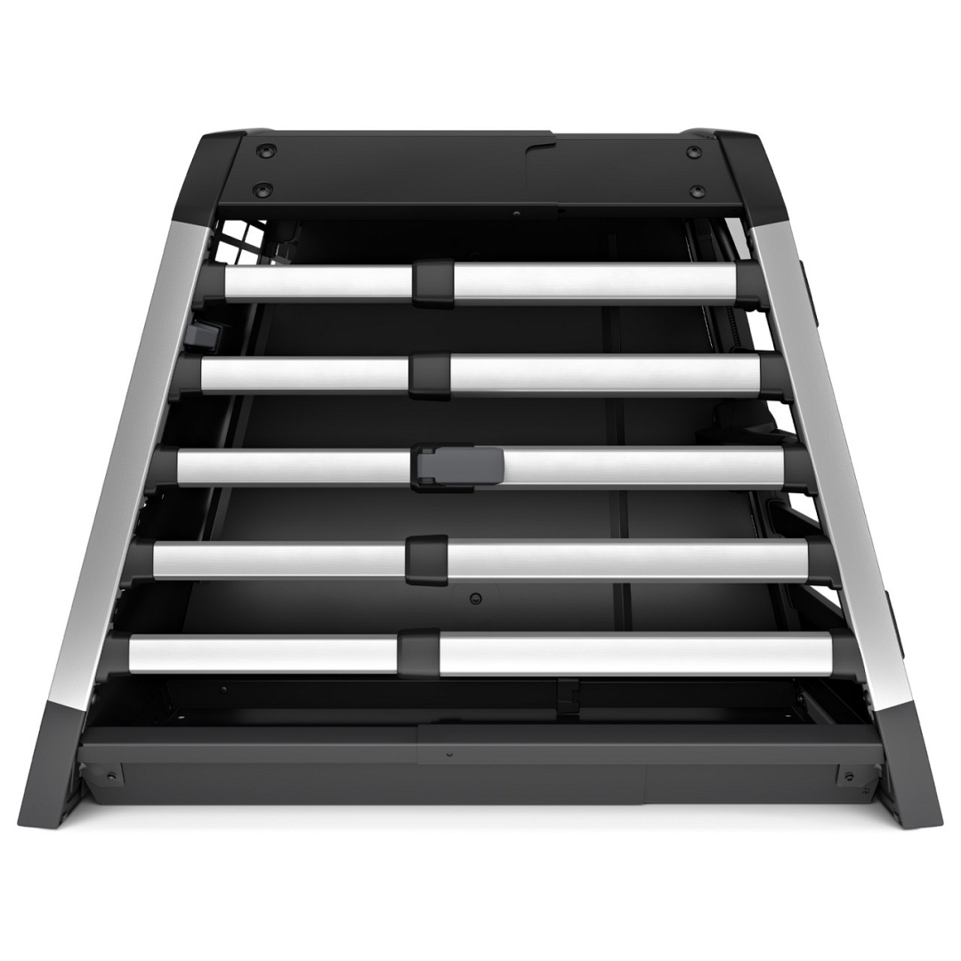 De afgeronde hoeken en het in diepte verstelbare ontwerp zorgen voor een perfecte pasvorm in de kofferbak. Spanbanden houden het stevig vast tijdens het rijden. Goed ontworpen en goed gebouwd, geen geluid of gerammel van deze premium hondenbench.