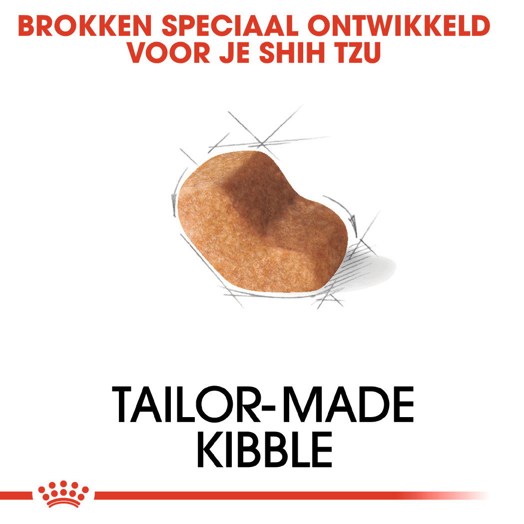 Voor de kleine kaak zijn de brokjes van Royal Canin Shih Tzu speciaal aangepast.