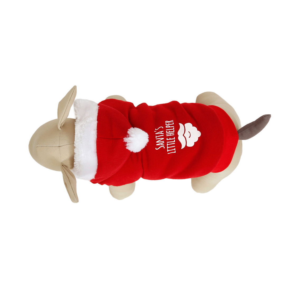 Deze hondensweater met leuk opschrift Santa’s little helper is niet alleen erg stijlvol en feestelijk, maar ook super comfortabel en gezellig. Deze kersttrui voor honden is namelijk gemaakt van een aangename en zachte sweaterstof van 100% polyester en is aan de binnenkant uitgerust met een extra zachte en wollige stof, om je huisdier ook op de koudste dagen van het jaar lekker warm te houden. De sweater heeft niet alleen een grappig opschrift, maar ook een bijpassende tekening van het gareel van een rendier. Daarnaast zit er op de kap een schattig gewei en een rode pompon als neus van Rudolf het rendier. Bovendien is de sweater voorzien van een ritssluiting, waardoor je hem makkelijk aan en uit kan doen en is de trui wasbaar in het wasmachine op 30 graden.