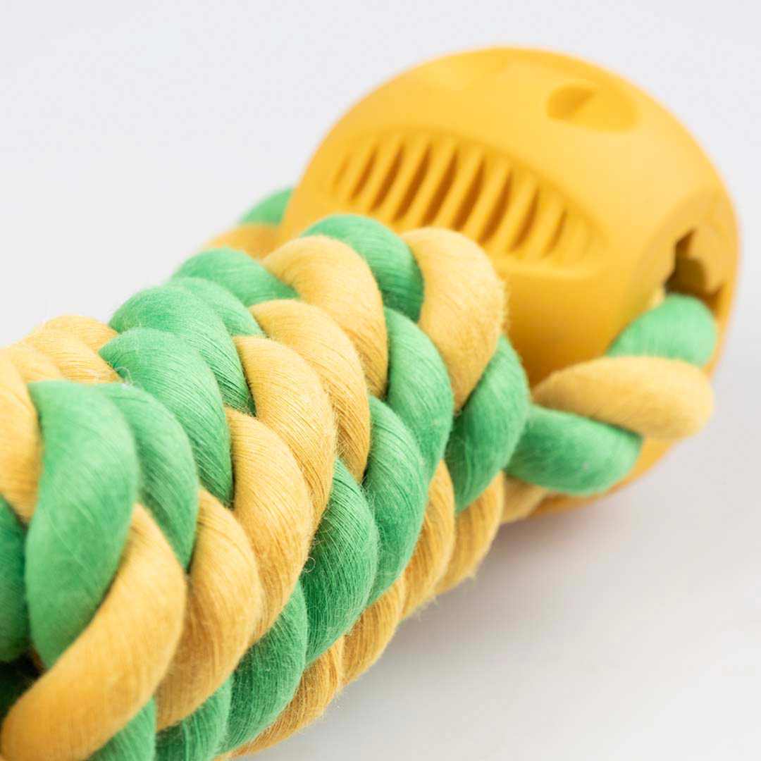 Touwspeeltje voor de leukste trek- en apporteerspelletjes. Kauwen op dit speeltje helpt bij de gebitsverzorging.