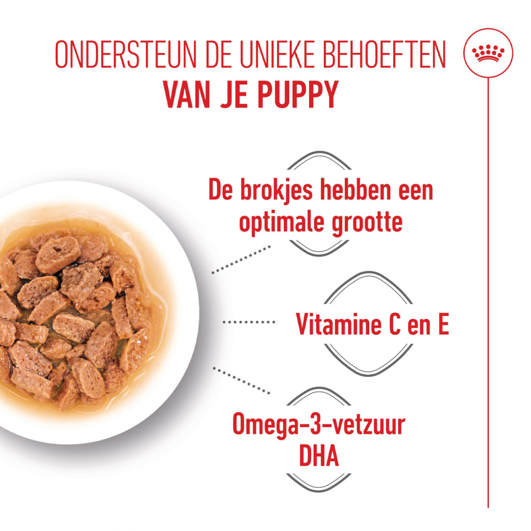 Voldoet aan de hoge energiebehoefte van een pup van een klein ras.