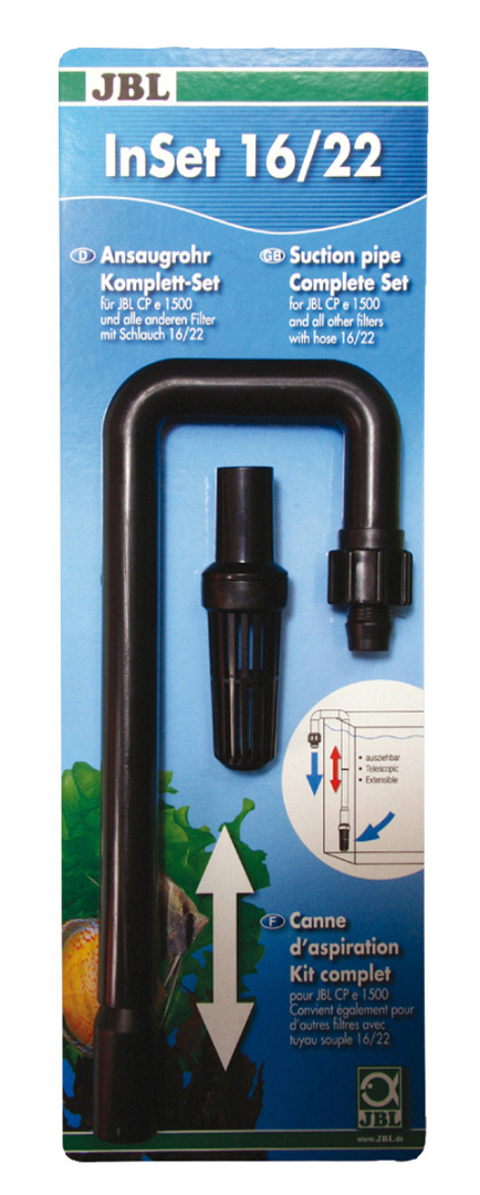 Aanzuigbuis met het buitenfilter verbinden. Plaatsing van de aanzuigbuis in het aquarium. Inclusief uittrekbare aanzuigbuis met hoek en veilige bevestiging door slangkoppeling.