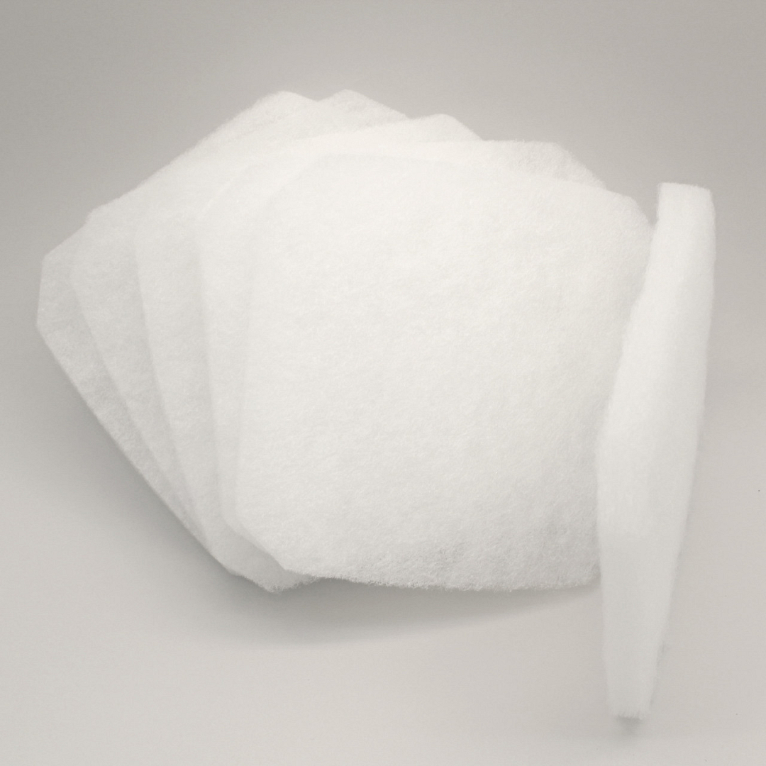 Wattenvlies heeft het voordeel dat het niet rafelt zoals filterwatten en op maat is gesneden voor de buitenfilters.