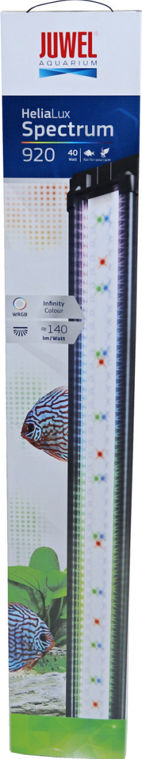 • De combinatie van witte 9000 K & 6500 K leds zorgen voor een ideale plantengroei in jouw Juwel aquarium • Voor intensieve kleuren en maximaal contrast zijn er in het HeliaLux Spectrum speciale rode, groene en blauwe volspectrum-leds gebruikt • Het speciaal ontwikkelde aluminium in honingraatstructuur garandeert een optimale warmteafvoer en een lange levensduur van de SMD-LEDs • Passend voor alle Juwel aquaria met een vast ingebouwd bovenframe. Zoals Rio, Lido, Vision en Trigon. Dankzij de HeliaLux UniversalFit kan de HeliaLux Spectrum ook op aquaria van andere fabrikanten worden gemonteerd.