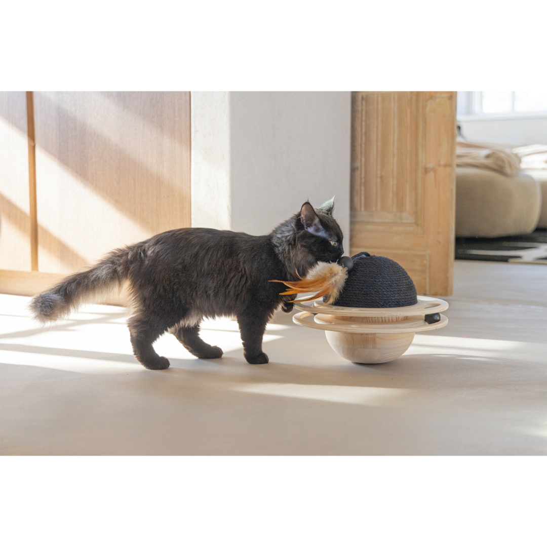 Het speeltje is nog leuker voor jouw kat door toevoeging van het houten frame met speelballetjes, rondom de speelbol. De bolletjes zullen in het houten frame gaan rollen, zodra jouw kat er met zijn of haar pootjes tegenaan tikt. Superleuk om het jachtinstinct te triggeren. Al met al, zal jouw kat dol zijn op speelbol Baya.