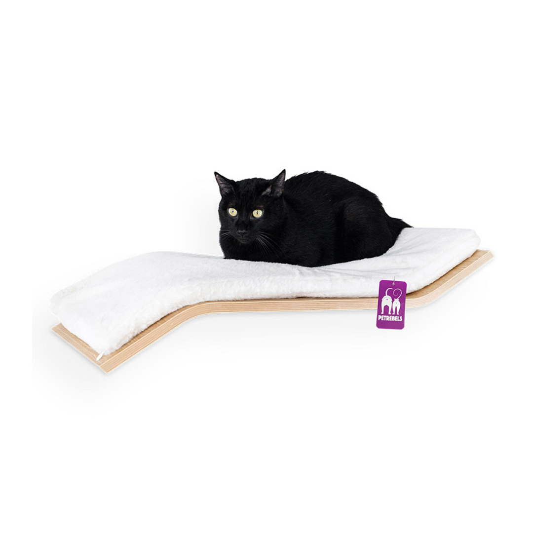De Petrebels Wave is een smaakvol gebogen wandplank met kattenkussen en onderdeel van de Wall of Rebels: een prachtige collectie producten waar katten in kunnen slapen, spelen, klimmen, overheen kunnen rennen en aan kunnen krabben. Hang de Wave 70 laag bij de grond als je kat nog klein is of wat ouder. Of juist lekker hoog als je kat speels en actief is. En je zorgt dat je kat er makkelijk bij komt door deze te combineren met de toffe klimonderdelen van Wall of Rebels.
