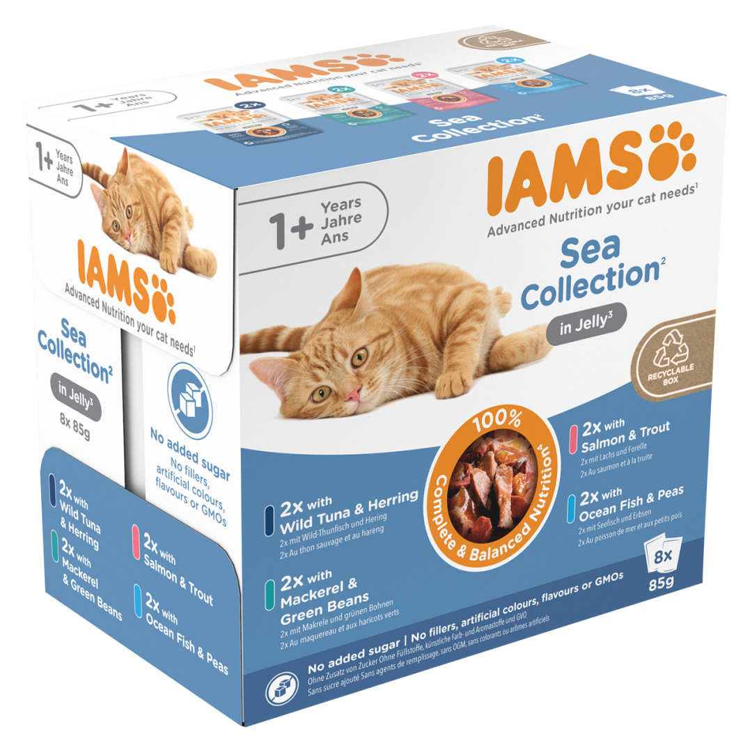 Zeevis en erwten: Vitaminen: vitamine D?: 200IE, vitamine E: 100IE, taurine: 400mg, biotine: 100?g. Sporenelementen: mangaan (mangaansulfaatmonohydraat): 0.68mg, zink (zinksulfaatmonohydraat): 11.3mg. ^Extra toegevoegd tijdens de productie. |