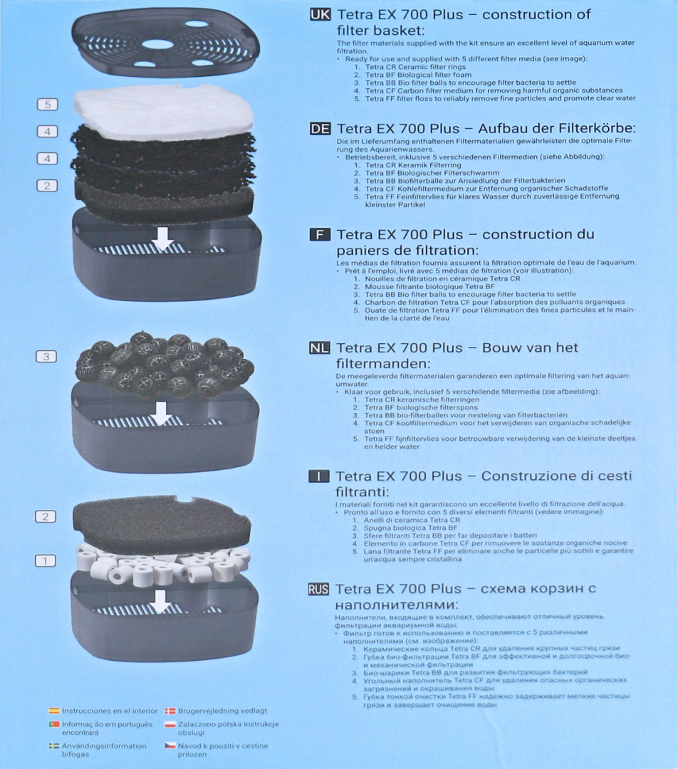 Om uw vissen en planten gezond te houden is een permanente filtering van het aquariumwater nodig. De Tetra EX 700 Plus complete buitenfilterset zorgt voor een uitstekende waterkwaliteit voor vissen in aquaria met een inhoud van 100 tot 200 liter. In deze complete set zijn alle filtermaterialen inbegrepen om het filter snel en eenvoudig te activeren en onmiddellijk in gebruik te nemen. Het uit meerdere korven opgebouwde systeem en verschillende filtermaterialen reinigen niet alleen het aquariumwater op betrouwbare en efficiënte wijze door overtollige voedingsstoffen af te breken, maar bieden ook een fascinerende inkijk in het aquariumleven door het aquariumwater kristalhelder te maken. Bovendien is de Tetra EX 700 Plus complete buitenfilterset bijzonder krachtig met een 39% hoger debiet, maar toch energiezuinig en stil. Extra functies zoals een aanzuighulp om het filter te starten, ventielen om de waterstroom nauwkeurig te regelen en een voorfilterfunctie om het onderhoud tot een minimum te beperken, maken de Tetra EX 700 Plus complete buitenfilterset ideaal voor alle aquariumhouders.